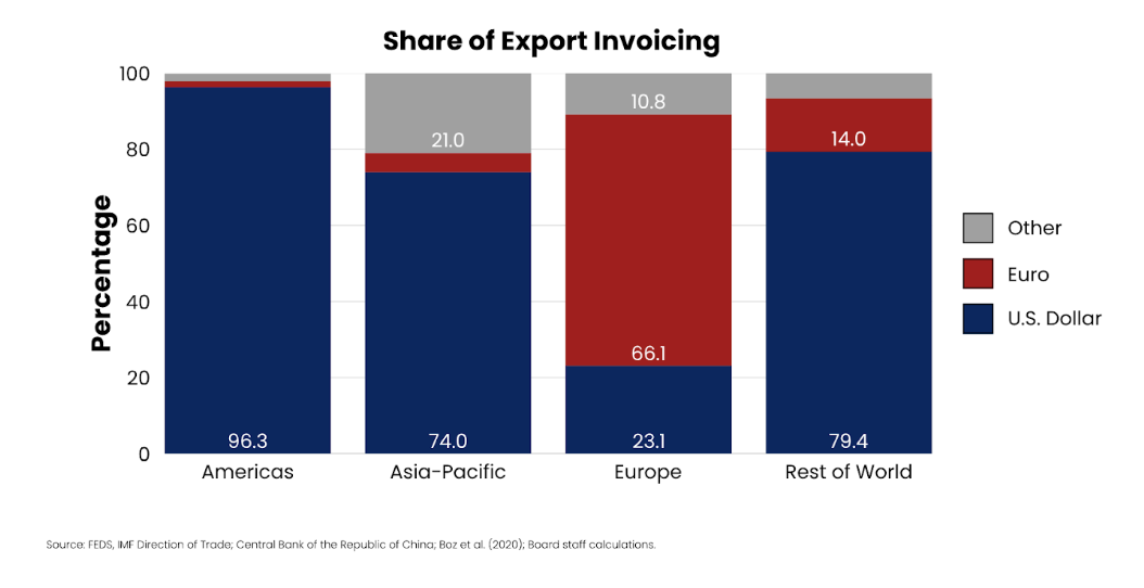 Most remarkably, in the rest of the world—encompassing Africa, the Middle East, and other regions—79% of trade invoicing occurs in dollars,demonstrating the currency's truly global reach.